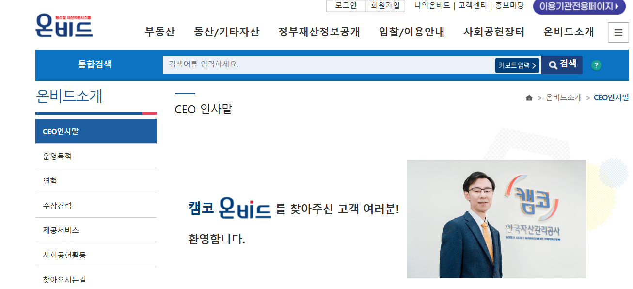 - 먼저 PC에서는 온비드 공식 홈페이지에 접속합니다.
