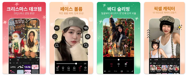 - 슬림 및 몸매 보정: 얼굴과 몸매를 자연스럽게 보정할 수 있는 기능을 제공합니다.