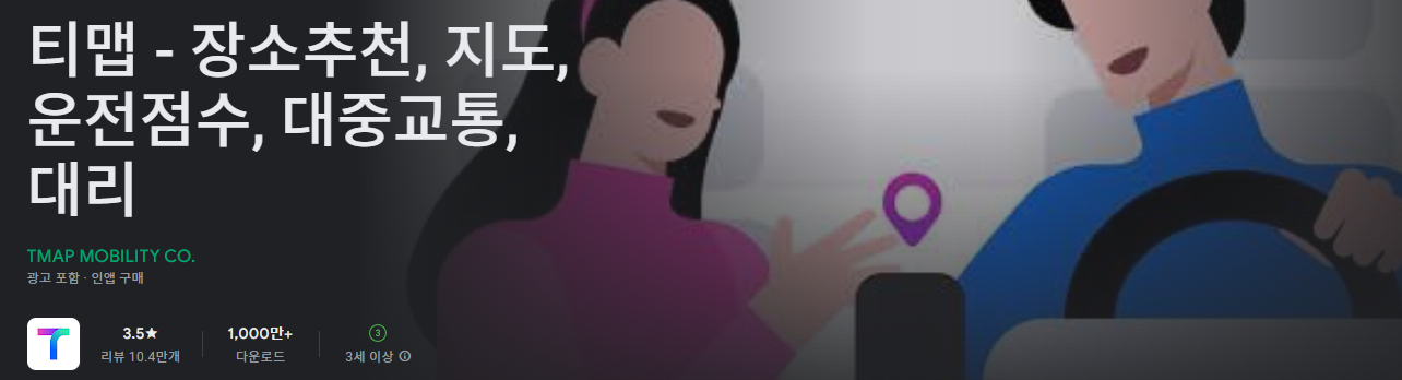 - 안드로이드: 구글 플레이 스토어에서 “티맵 - 장소추천, 지도, 운전점수, 대중교통, 대리” 검색 후 설치 가능합니다.