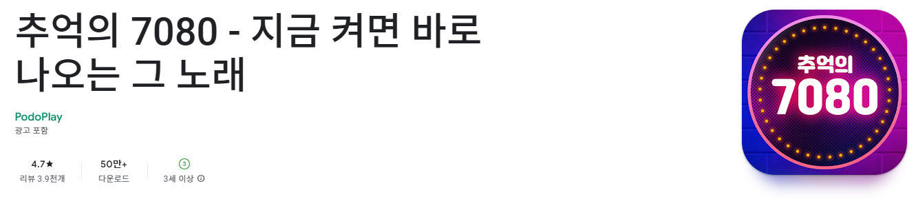 지금부터 7080노래 모음 연속듣기 어플에 대해서 알아보겠습니다. 추억의 7080 – 지금 켜면 바로 나오는 그 노래 앱은 중장년층과 7080 세대의 음악 감성을 담아 편리하게 옛 명곡을 들을 수 있도록 설계된 모바일 음악 스트리밍 애플리케이션입니다. 이 앱은 복잡한 설정 없이 직관적인 사용자 인터페이스로 원하는 노래를 쉽고 빠르게 재생할 수 있는 것이 특징입니다. 구글 플레이 스토어 기준 설치 수는 약 50만 회 이상이며 많은 사용자로부터 높은 평점을 받고 있습니다.
