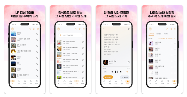 가사를 함께 제공하여 노래를 따라 부르거나 옛 추억을 떠올리며 감상하기 좋으며 직관적인 인터페이스로 누구나 쉽게 사용할 수 있습니다. 광고가 포함된 무료 앱 형태로 제공되어 부담 없이 설치해 음악을 즐길 수 있습니다.