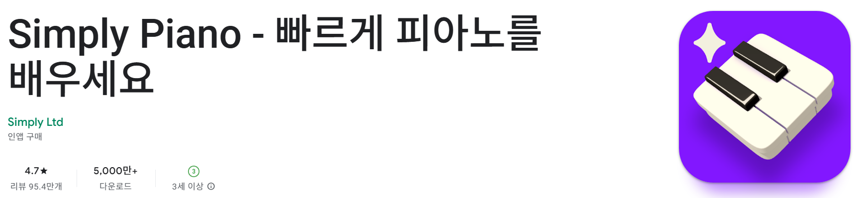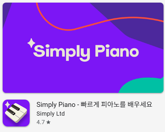 - 앱 검색: 스마트폰에서 구글 플레이스토어를 실행한 뒤 “Simply Piano”를 검색합니다.