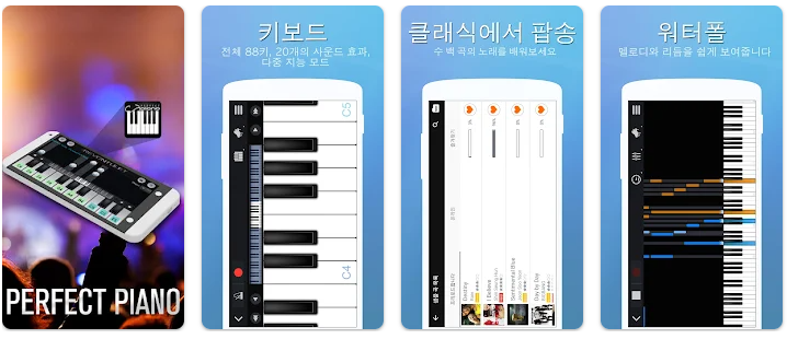 - 안드로이드 설치: 구글 플레이스토어에서 ‘Perfect Piano’를 검색하여 설치하시면 됩니다.