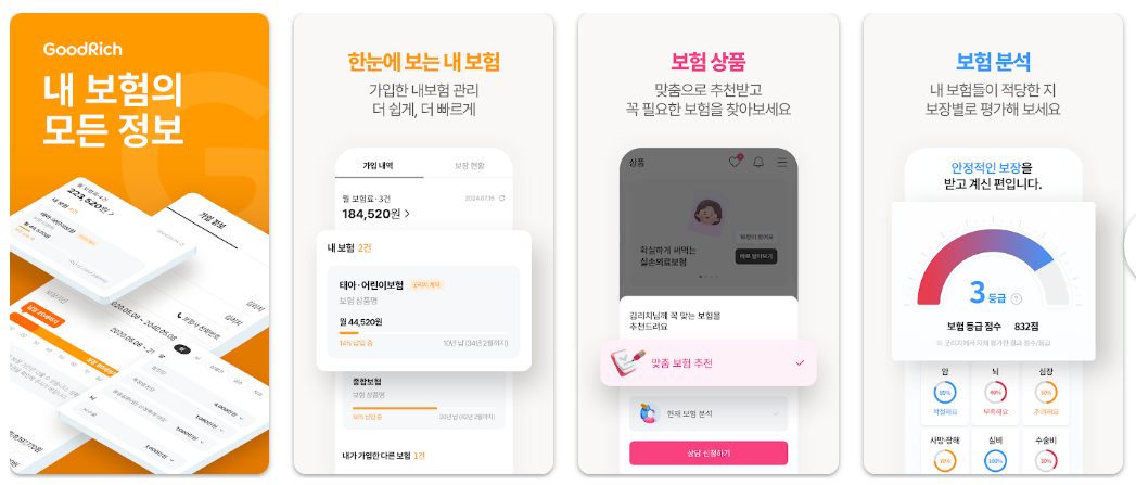특히 최근에는 본인 인증만으로 가입된 내 보험 조회하기 및 분석까지 해주는 서비스가 등장하면서, 보험 관리 방식이 크게 달라지고 있습니다. 그중에서도 굿리치 앱은 내 보험 조회와 분석 기능을 중심으로 많은 사용자들이 활용하고 있는 대표적인 앱입니다.
