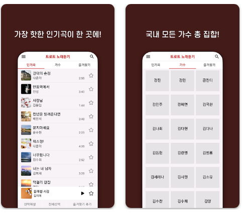 - “돈 내지 않고 트로트를 들을 수 있어서 만족합니다. 광고는 있지만 감상하는 데 큰 불편은 없습니다.”