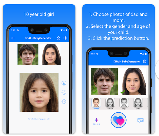 BabyGenerator는 인공지능 기술을 활용해 부모님의 사진을 기반으로 미래 아기 얼굴 예측 이미지를 생성해 주는 앱입니다. 이 앱은 Google Play에서 4.7 이상의 높은 평점과 1,000만 회 이상의 다운로드 수를 기록할 정도로 많은 사용자들에게 사랑받고 있습니다. 인공지능은 부모님의 얼굴 특징을 분석하여 아기의 얼굴 이미지를 만들어내지만, 실제 유전 정보나 과학적 분석에 기반한 예측은 아니므로 참고용으로 활용하는 것이 바람직합니다.
